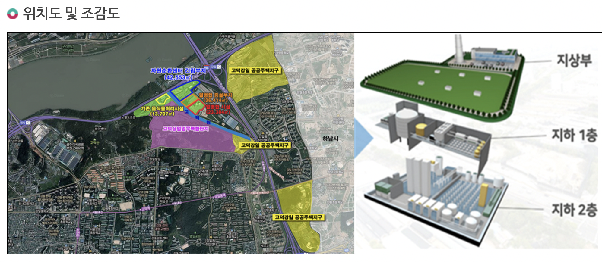- 목적 : 강동구 자원순환센터 건립사업』은 기존 시설물(광역 음식폐기물처리시설, 재활용선별시설 등)을 운영하여 왔으나, “고덕․강일 공공주택사업” 추진에 따라 노후시설물을 「현대화․지하화」하여 폐기물처리의 효율성 및 안정성을 확보하고자 함.